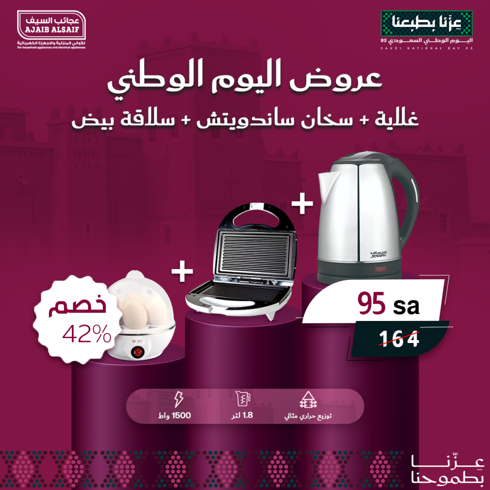 بكج الافطار عروض اليوم الوطني غلاية استيل + سخان سندوتش +سلاقة بيض