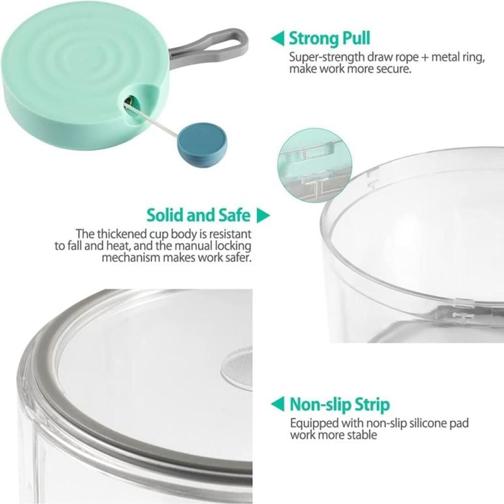 - آمنة للاستخدام في مفرمة البصل: تعمل بدون كهرباء. أكثر هدوءًا وراحة وأقل فوضى مقارنة بمحضر الطعام الكهربائي