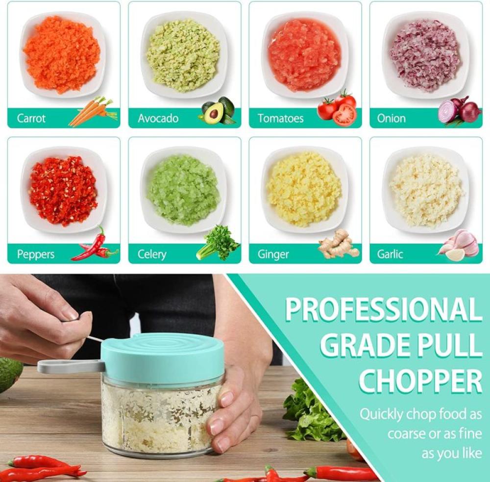 - قطاعة ثوم وبصل متعددة الأغراض: مثالية لتقطيع الخضروات والفواكه والمكسرات مثل الثوم والبصل والطماطم والبطاطس والعديد من الخضروات الأخرى لأطعمة الأطفال والسلطة والصلصة والبيستو والحمص والجواكامولي وما إلى ذلك.