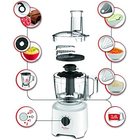 - خلاط لخيارات لا حصر لها: اكتشفوا محضرة طعام واحدة لجميع متطلبات الطبخ الخاصة بكم، مع خلاط سعة 1.8L مرفق لتحضير مشروبات السموثي الرائعة وغير ذلك