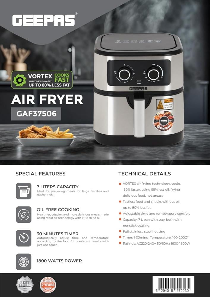 - تقنية فورتكس: تقنية دوران الهواء الساخن للقلي الجاف قليل الدسم والخالي من الزيوت لطهي طعام صحي